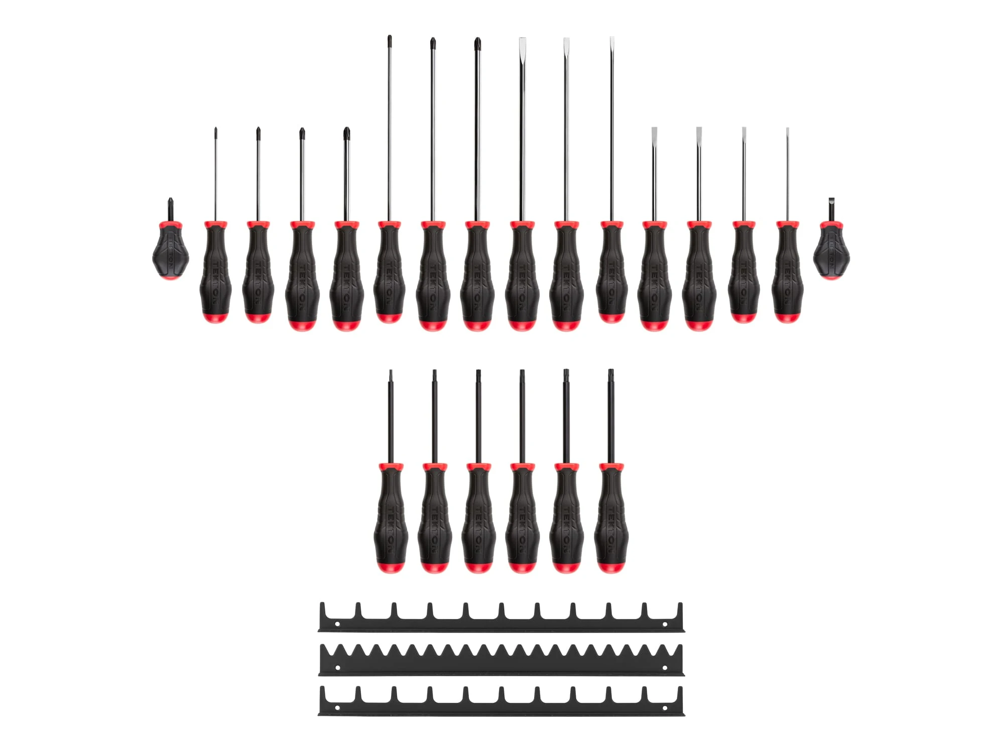 TEKTON [3]High-Torque Screwdriver Set With Black Rails, 22-Piece (#0-#3, 1/8-5/16 In., T10-T30)