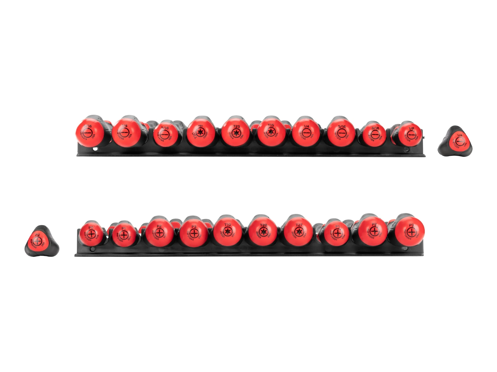 SKU: DRV45500 Categories: High-Torque Screwdrivers, Mixed Driver Sets, Screwdrivers Tags: 1/8-5/16 inch (slotted/flathead), Includes: #0-#3 (Phillips), T10-30 (Torx) screwdrivers with red rails. High-torque handles. Made in USA.