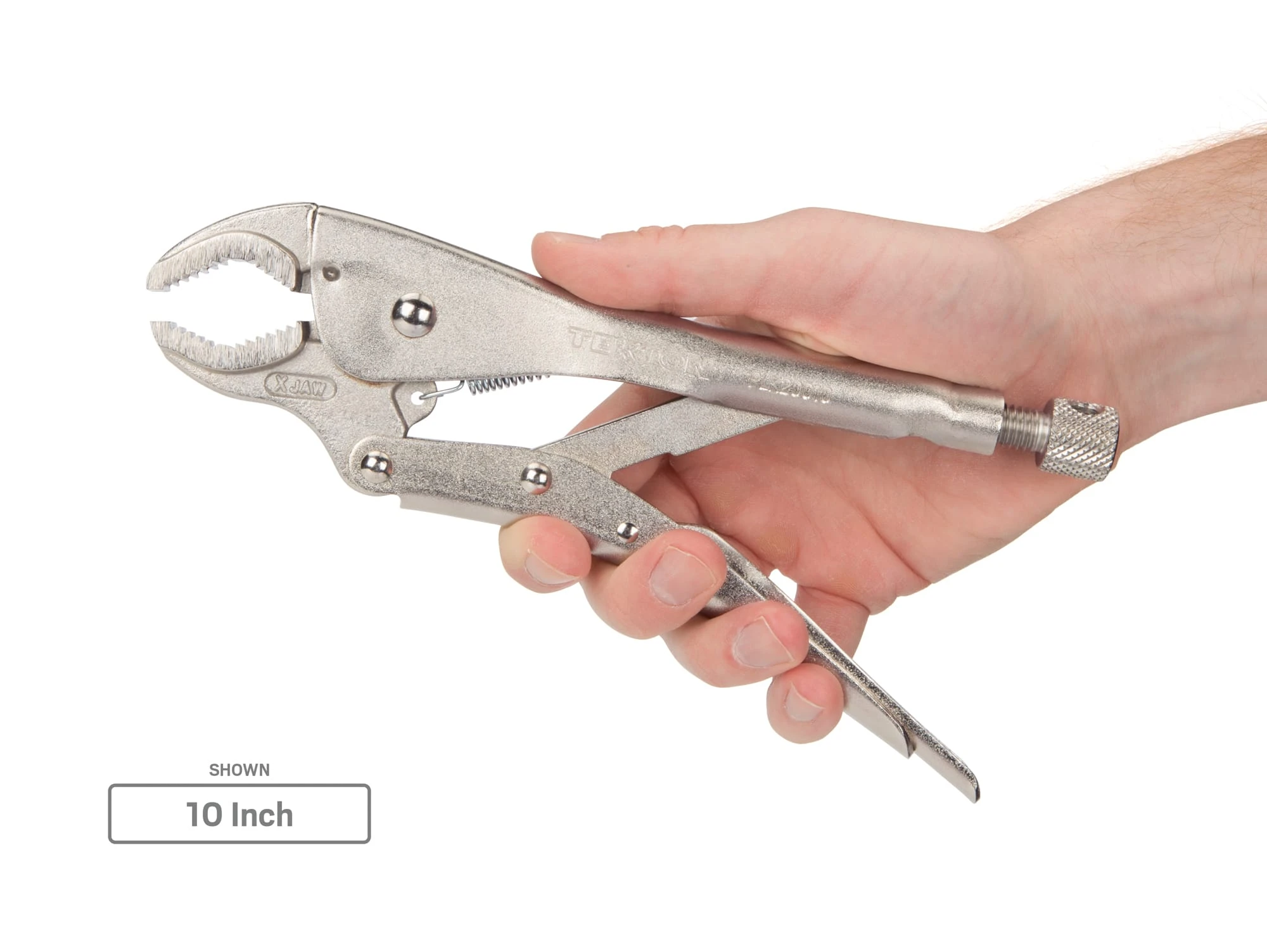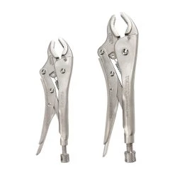 SKU: PLK90201 Categories: Deep Bite Round Jaw, Locking Pliers, Pliers Tag: Includes: 7 and 10 inch pliers. Jaws slide forward as they close to create extra-high clamping pressure for pipes and rounded-off nuts. PLK90201.