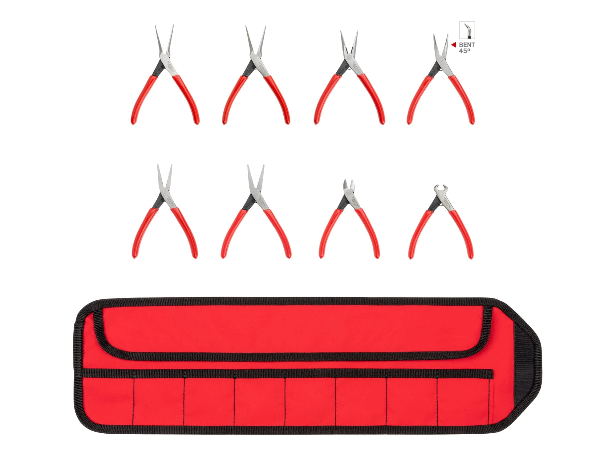 TEKTON [49]Mini Pliers Set With Pouch, 8-Piece (Needle Nose, Long Nose, Flat Nose, Cutting)