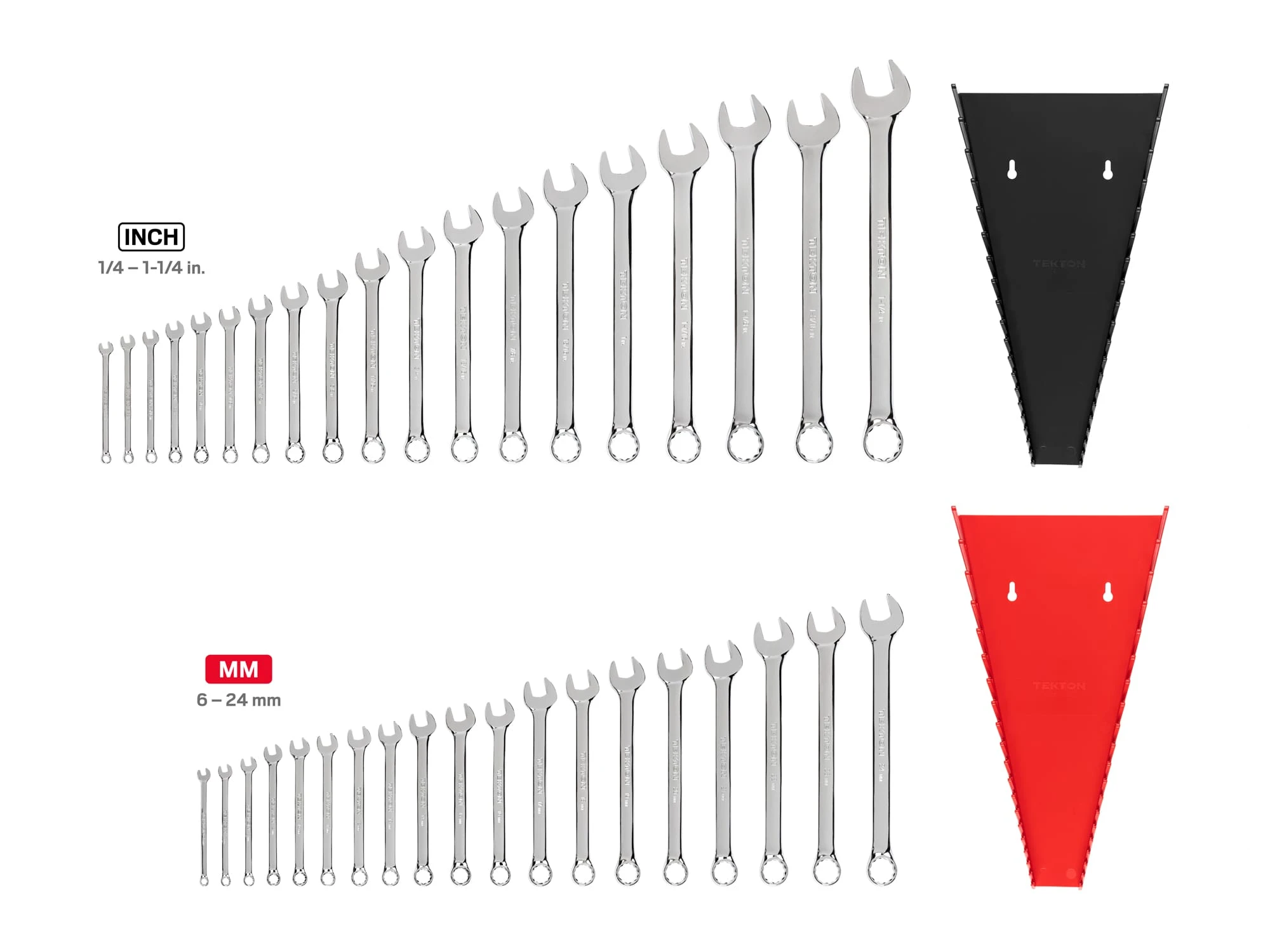 TEKTON [5]Combination Wrench Set With Rack, 38-Piece (1/4 – 1-1/4 In., 6-24 Mm)